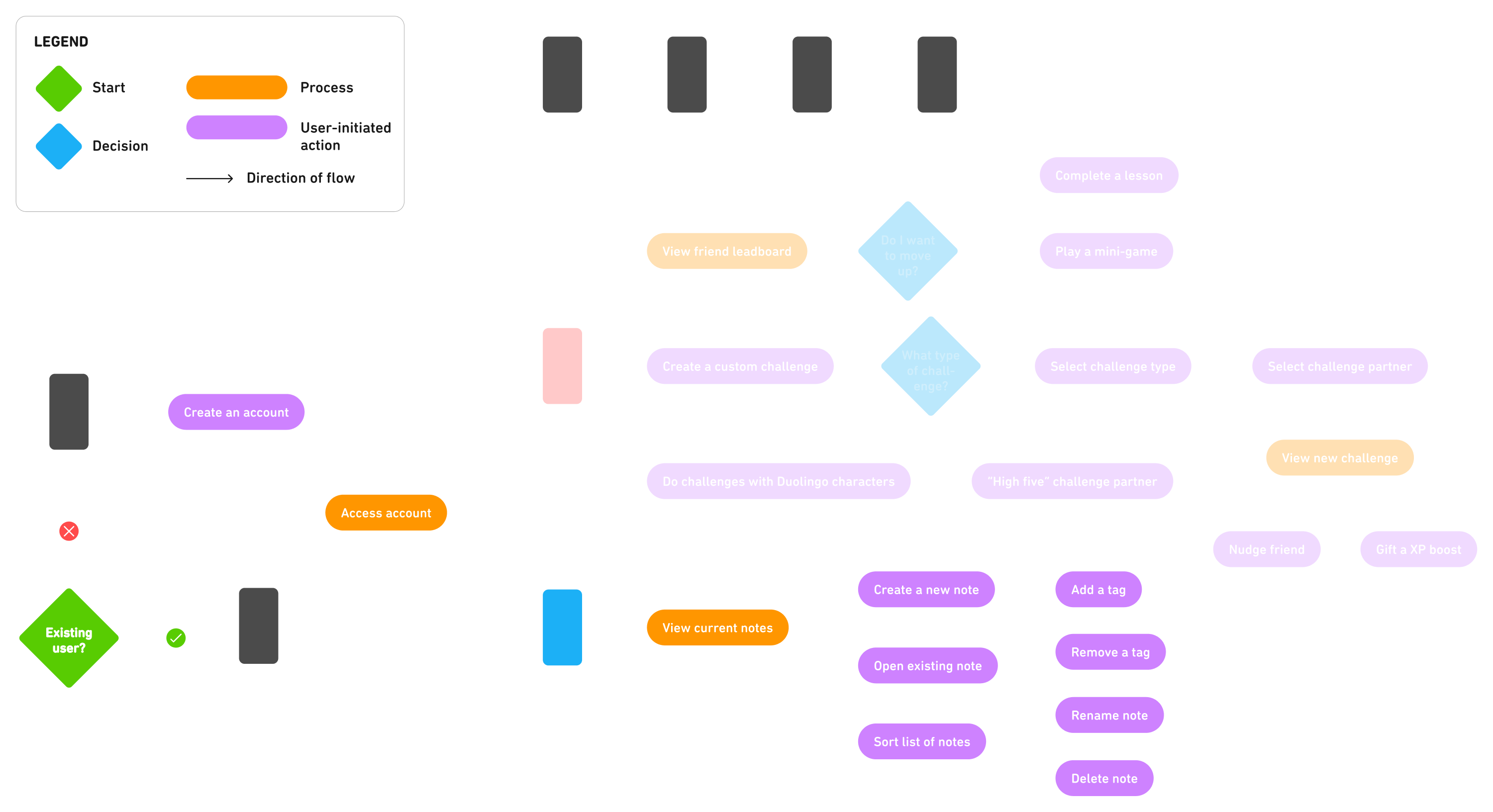 As part of my Masters studies in UX and service design, I explored the process of improving the user experience of mobile-assisted language learning apps by examining the functionality of Duolingo and its features. This case study introduces two new features that are designed to facilitate more opportunities for peer-to-peer learning and self-study: Duolingo Notes and Learning with Friends.