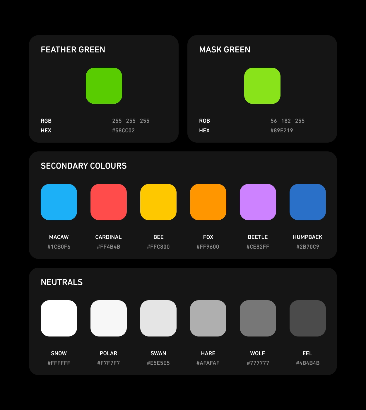 Duolingo is a highly visual brand, relying on bright colours, rounded typography and shapes, cartoon-like characters and a sense of approachability that makes learning fun. Given I was designing the new features as an extension of what already exists, it was important to replicate the Duolingo interface as closely as possible. Although Duolingo's brand kit provided visual guidelines for its material, many interactive elements were designed by hand; layout designs and placement of elements referenced screenshots of the app's Android version.