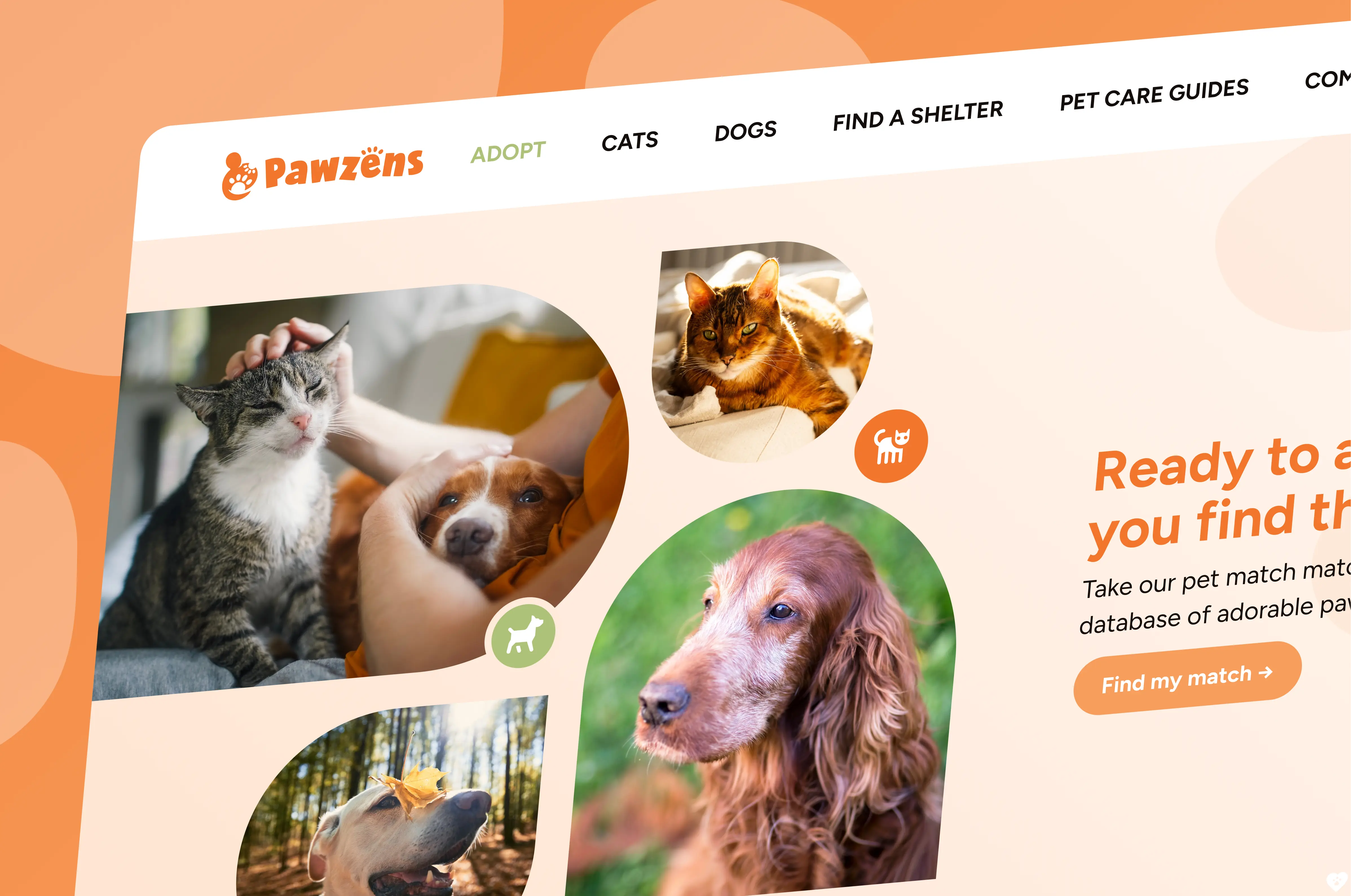 As part of my Masters studies in UX and service design, I explored the process of senior pet adoption and creating adoption opportunities for an age demographic that often gets forgotten by adopters. Spanning eight months of production, this project introduces PAWZENS β a senior pet adoption service with a mission to treat every aging pet as equal and break down the digital barriers that prevent these four-legged friends from finding their forever homes.